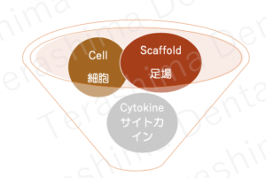 細胞、足場、サイトカインの条件がそろった時に再生されます。